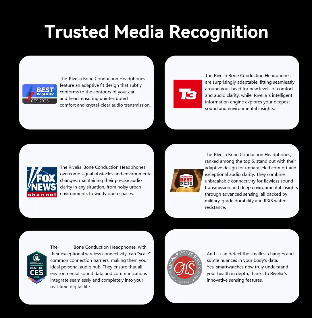 Rivelia Bone Conduction Headphones: Enjoy premium audio and stay aware 24/7, boost your activities, simplify daily interactions, and wear the perfect blend of fashion and innovative sound.
